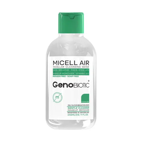 میسلار واتر ژنوبایوتیک با فرمولاسیون تخصصی خود، مخصوص پوستهای چرب و مختلط طراحی شده و علاوهبر پاککنندگی، به کنترل چربی و جلوگیری از براقی پوست کمک میکند.